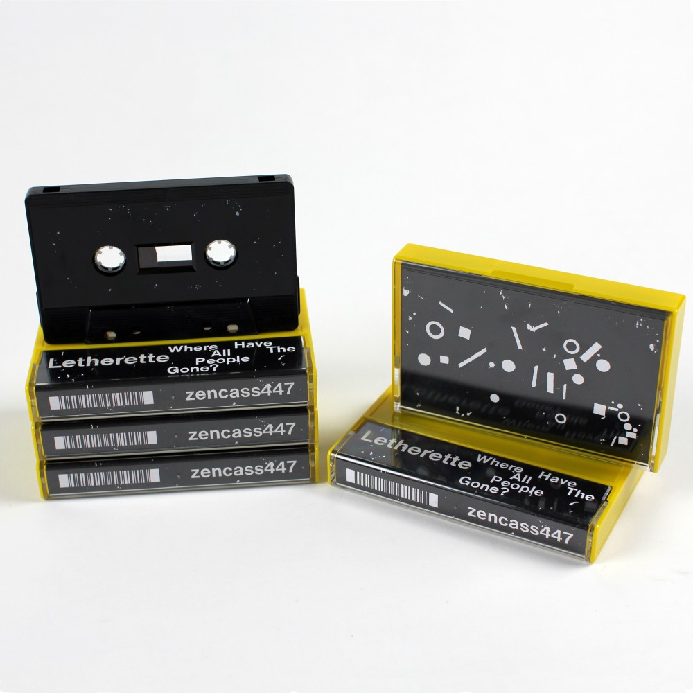 Strictly limited edition black/white-flecked cassette in a yellow library case featuring a 40 minute mix of previously unreleased Letherette productions. Where Have All The People Gone? will be available from 25th November 2016 to partner the release of Letherette’s second album for Ninja Tune: Last Night On The Planet.