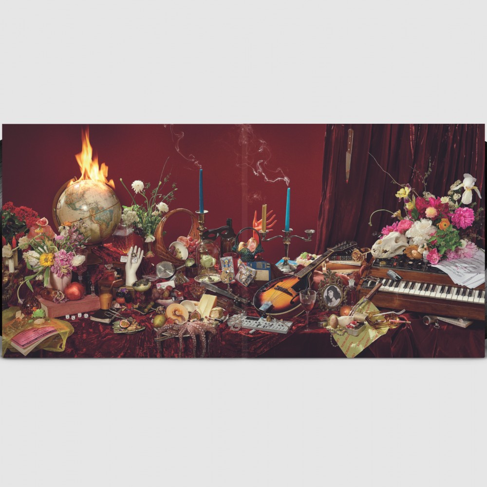 12” gatefold sleeve with both sides opening. 140g black vinyl in inner sleeve one side (black) (inserted back cover side) x2. Poster insert (58cm x 84cm) folded to six panels per side. |