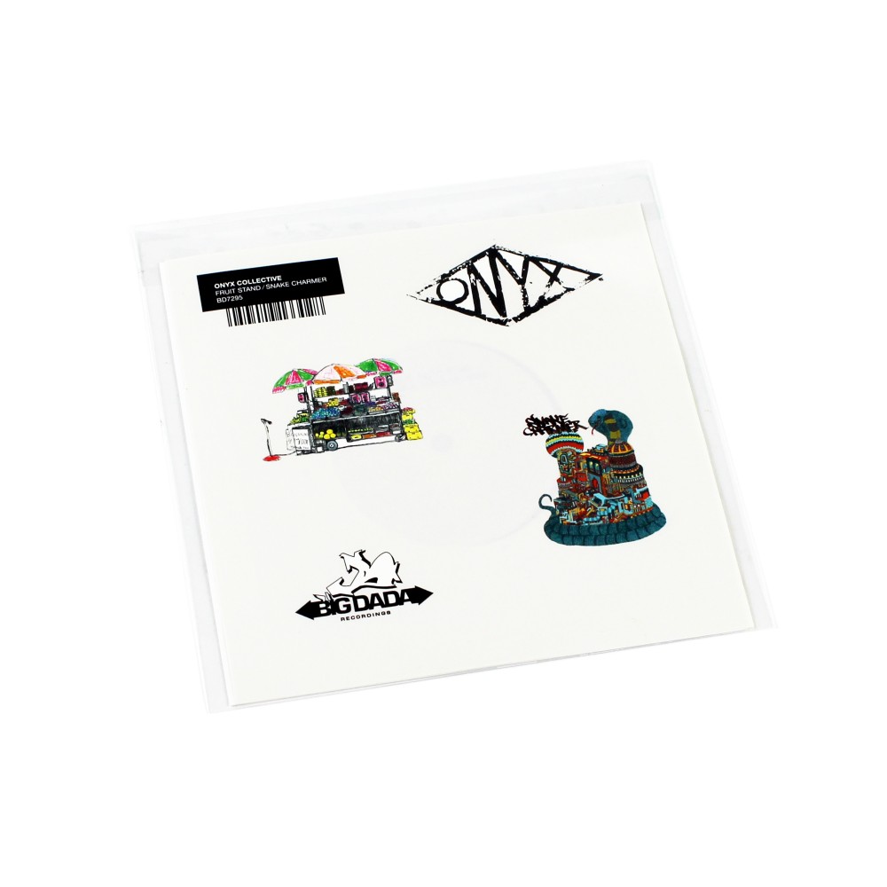 500 (worldwide) limited edition 7” vinyl with hand stamped inner label, housed in a clear plastic bag with a die cut sticker sheet.