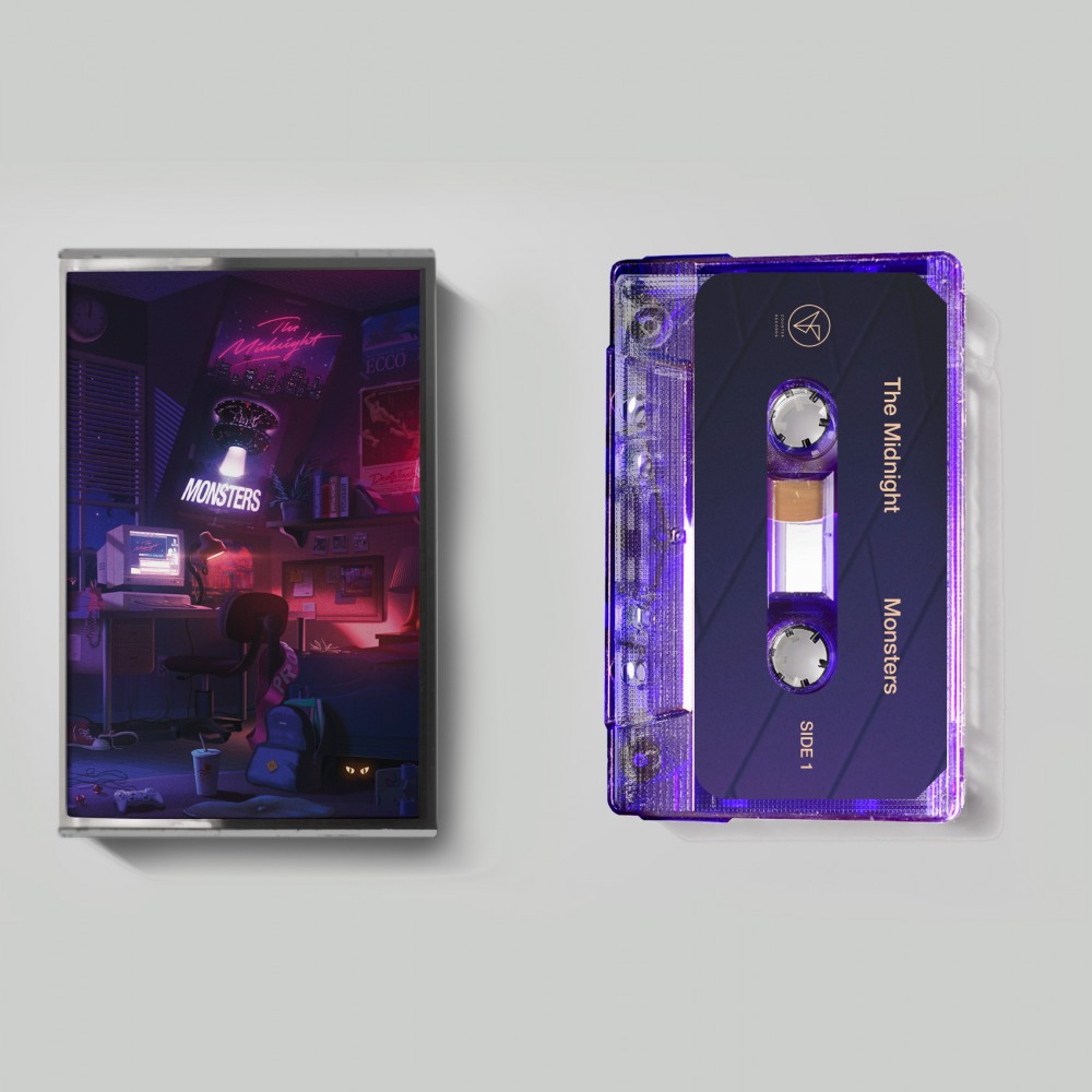 Limited edition official double cassette release of The Midnight album Monsters and Monsters (The Instrumentals). Transparent purple and orange tapes housed in a butterfly case with j-card inserts. |
